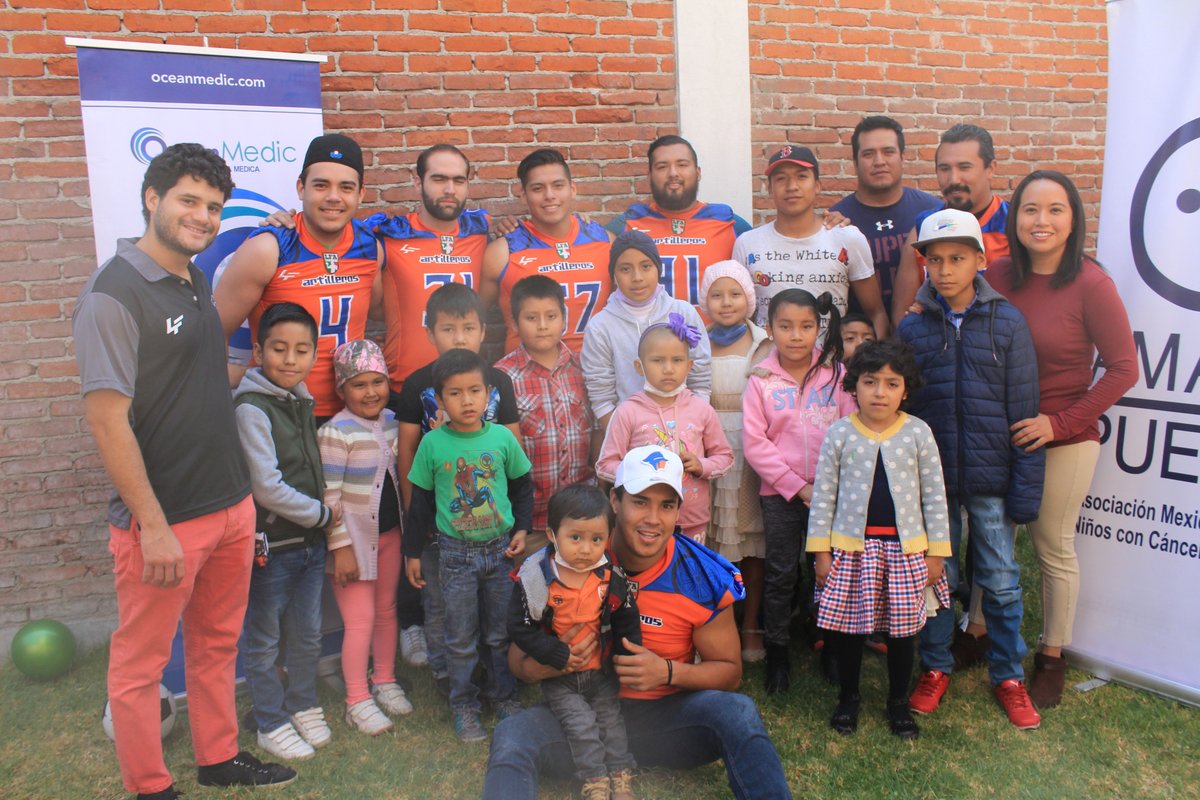 Puebla, Pue. - Los jugadores de futbol americano Artilleros 5 de mayo y las Boom Boom girls convivieron con niñas y niños que padecen cáncer, con motivo del DÃa del Niño.