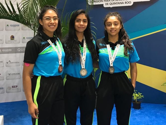 Ana Belén Flores Guerra, Perla Aidee Aguilar Juárez y Evelyn Sánchez Sotarriba, fueron las tres gladiadoras que consiguieron medalla de plata, mientras que Jazmín Nava Tesillos se colgó el bronce en este deporte que dirige el entrenador Jorge Rosas.