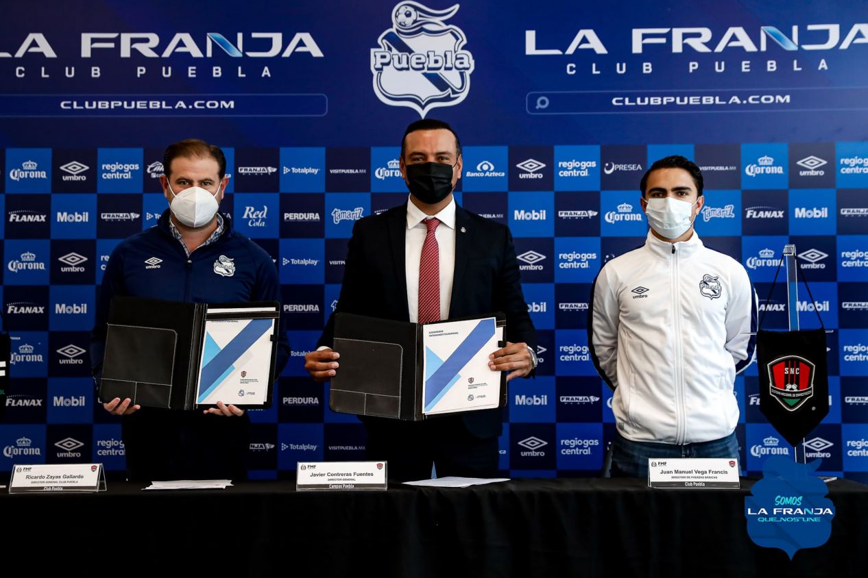 En la formalización de dicho acuerdo estuvieron presentes, el director general del Club Puebla, Ricardo Zayas Gallardo, el director de fuerzas básicas del Club Puebla, Manuel Vega Francis, así como Javier Contreras Fuentes, director general del SNC Campus Puebla.