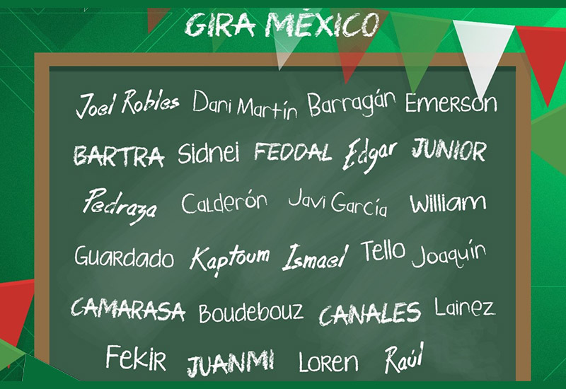 A través de su cuenta de twitter, Betis dio a conocer la lista de jugadores que harán el viaje a México para jugar los amistosos ante Querétaro (miércoles 24 de julio), y el ya referido ante la Franja.