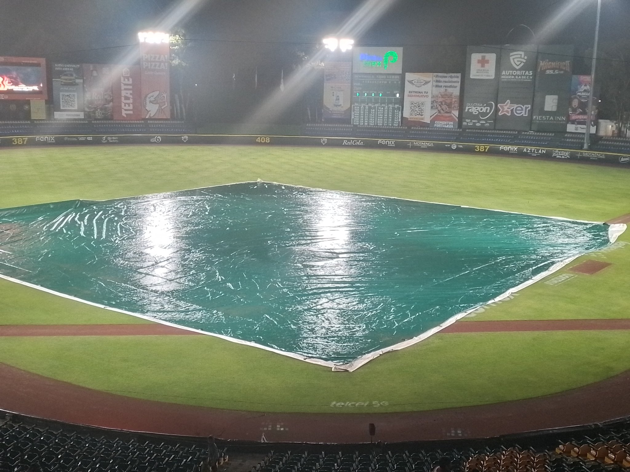 La voz de playball se iba a cantar 7 de la noche, pero debido a las inclemencias del tiempo, los umpires decidieron esperar las tres horas como lo marca el reglamento, y al percibir que no había condiciones para el desarrollo del juego, tanto para los peloteros como para los aficionados, decidieron cancelar de forma definitiva el encuentro.