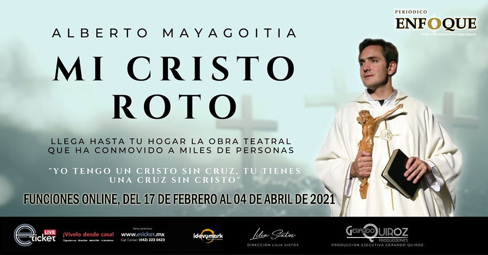 Ciudad de México. Alberto Mayagoitia presenta “Mi cristo roto” online, funciones del 17 de febrero al 04 de abril de 2021 a las 07:00 P.M. Duración aproximada de 45 minutos.