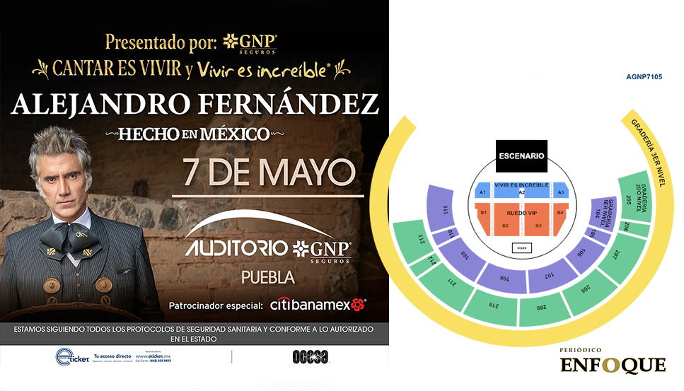 Alejandro Fernández, el cantautor de regional mexicano, confirmó sus esperadas citas en Mérida y Puebla: será el 05 de mayo en el Foro GNP Seguros cuando el Potrillo llegue a Mérida en reposición de la presentación originalmente pactada a realizarse el 8 de mayo de 2020 y que tuvo que ser pospuesta. Mientras que, el 07 de mayo, el cantautor arribará al Auditorio GNP Seguros para celebrar junto a sus fans poblanos.