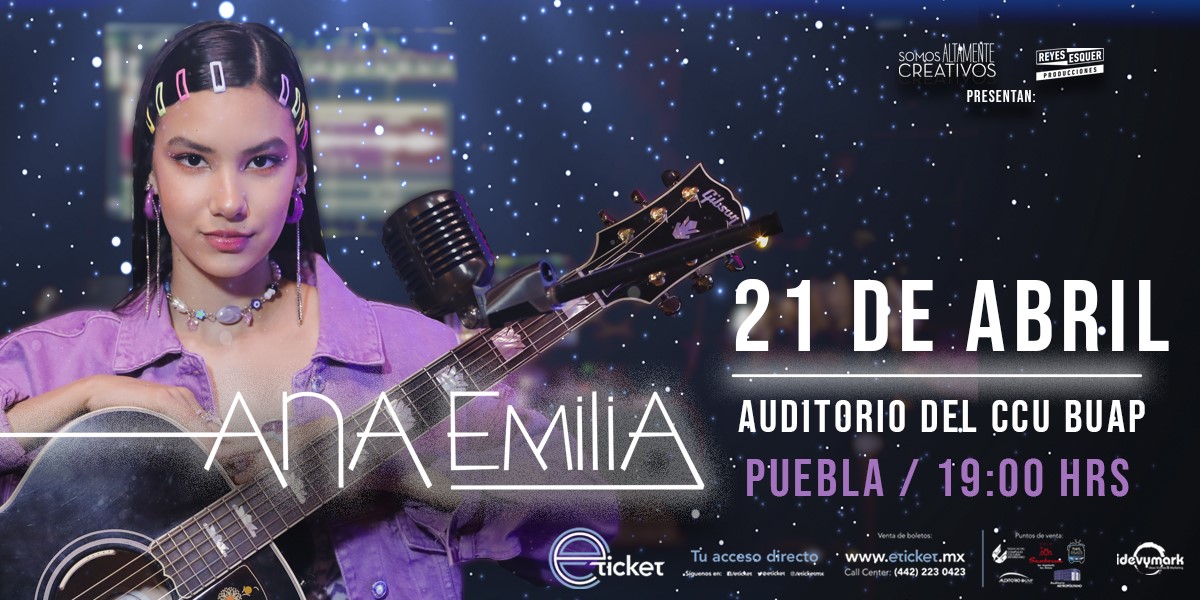 Ana Emilia , la youtuber, vloguer y cantante, se presentará el viernes 21 de abril de 2023, en el Auditorio del Complejo Cultural Universitario a las 07:00 P.M.