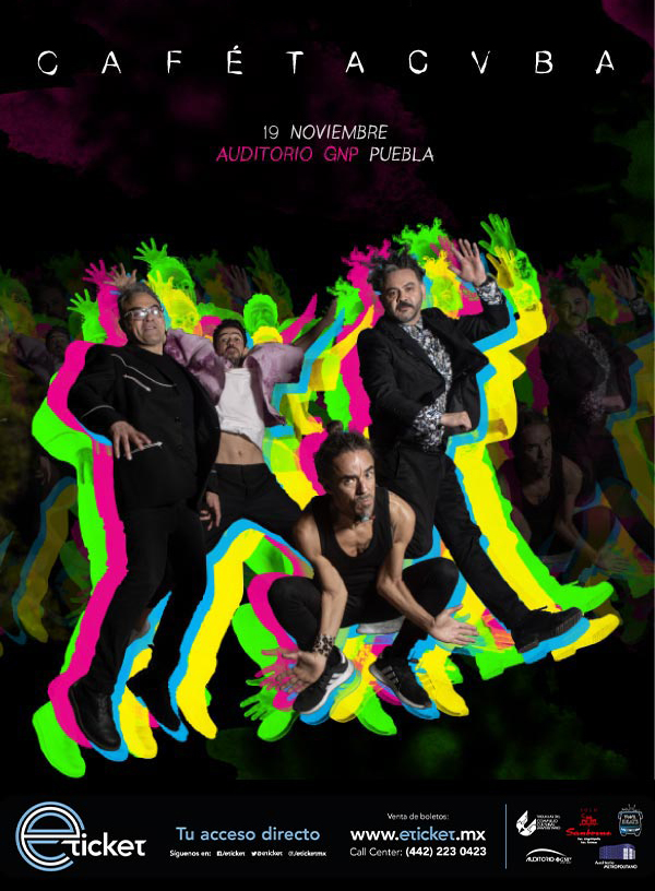 Café Tacvba, se presentará el sábado 19 de noviembre de 2022 en el Auditorio GNP Seguros, de la ciudad de Puebla, a las 09:00 P.M.