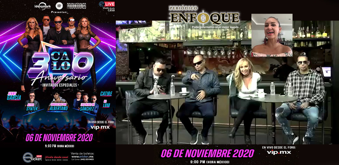 Puebla, Puebla, México. Caló 30 Aniversario, Online, 09:00 P.M. (Horario de la ciudad de México, viernes 06 de noviembre de 2020, en vivo desde el Foro VIP.MX. Presentarán una nueva versión y remix de canción con la colaboración de Aleks Syntek. También van a presentar capsulas, semblanzas, contar historias y anécdotas. Gran escenario con pista- pantalla de baile de leds.