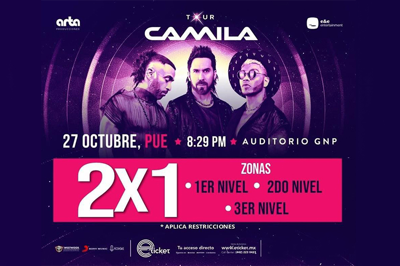 Camila, se presentará el viernes, 27 de octubre de 2023, Auditorio GNP Seguros de la ciudad de Puebla, a las 08:30 P.M.