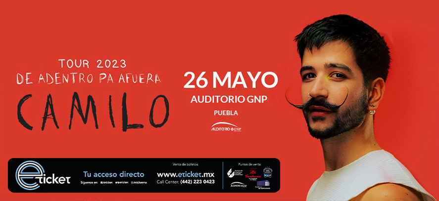 Camilo, en Puebla, con su gira #DeAdentroPaAfuera, viernes, 26 de mayo de 2023, Auditorio GNP Seguros, 09:00 P.M.