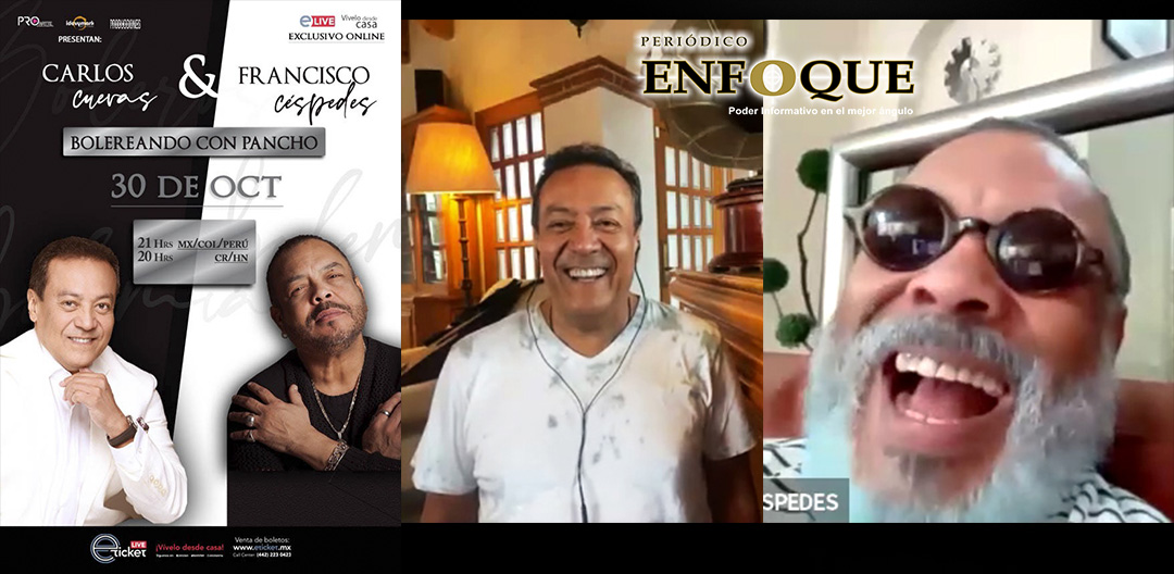 Puebla, Puebla, México. Carlos Cuevas & Francisco Céspedes. “Bolereando con pancho”, show online, 09:00 P.M. Viernes, 30 de octubre de 2020.