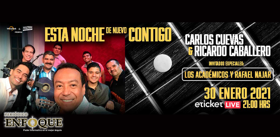 Carlos Cuevas & Ricardo Caballero, se presentarán el sábado, 30 de enero de 2021 a las 09:00 P.M. Además estarán acompañados por sus invitados especiales; Los académicos y Rafael Najar