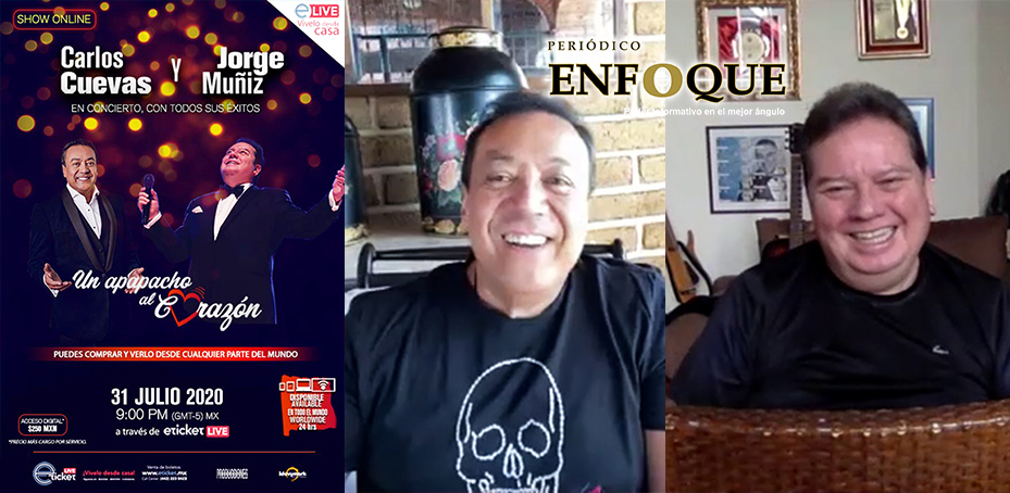 Puebla, Puebla, México. Carlos Cuevas y Jorge Muñiz se presentaran con su show Online “Un apapacho al corazón” a las 09:00 P.M. Viernes, 31 de julio de 2020.
