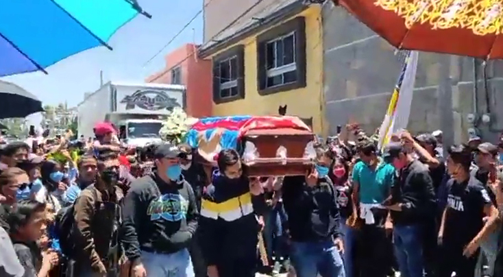 Puebla, Puebla, México. Cientos de seguidores de Miguel Martínez del Sonido Samurai, de Puebla, marcharon al panteón de San Baltazar Campeche para darle sepultura hoy 13 de junio de 2020 a la 01:00 P.M.