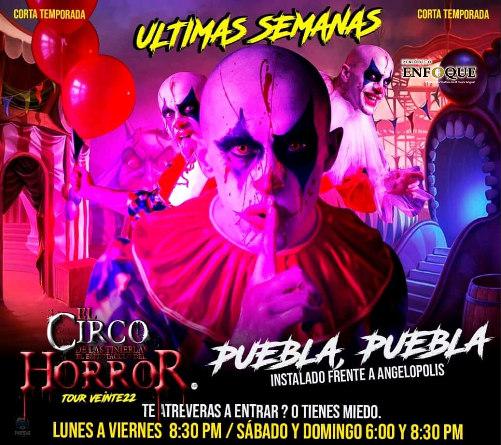 El Circo del horror, se estará presentando en las últimas semanas en Puebla, instalado frente a Angelópolis ¿Te atreverás a entrar o tienes miedo?