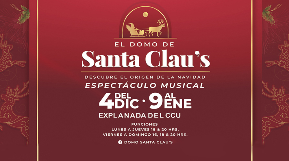 “El Domo de Santa Clau’s”, del 4 de diciembre de 2021 al 9 de enero de 2022, Explanada del CCU, Puebla., “Descubre el origen de la navidad”, un gran espectáculo para toda la familia, con más de 20 artistas en escena combinando; teatro, música, actos de circo, danza, canto, coreografías originales y temas navideños inéditos.