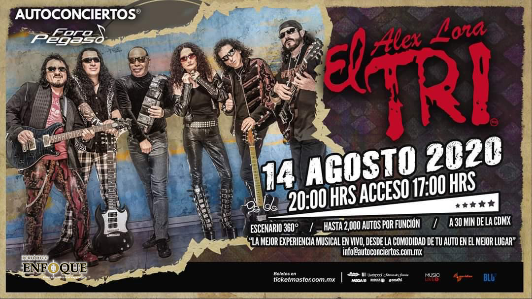 Puebla, Puebla, México. El Tri, en vivo y con publico presencial en sus automóviles, viernes 14 agosto de 2020 en el Foro Pegaso, Toluca, México, 08:00 P.M., presentado por Autoconciertos. Duración aproximada del concierto será de 2 horas o más, dependiendo del ánimo de la gente.