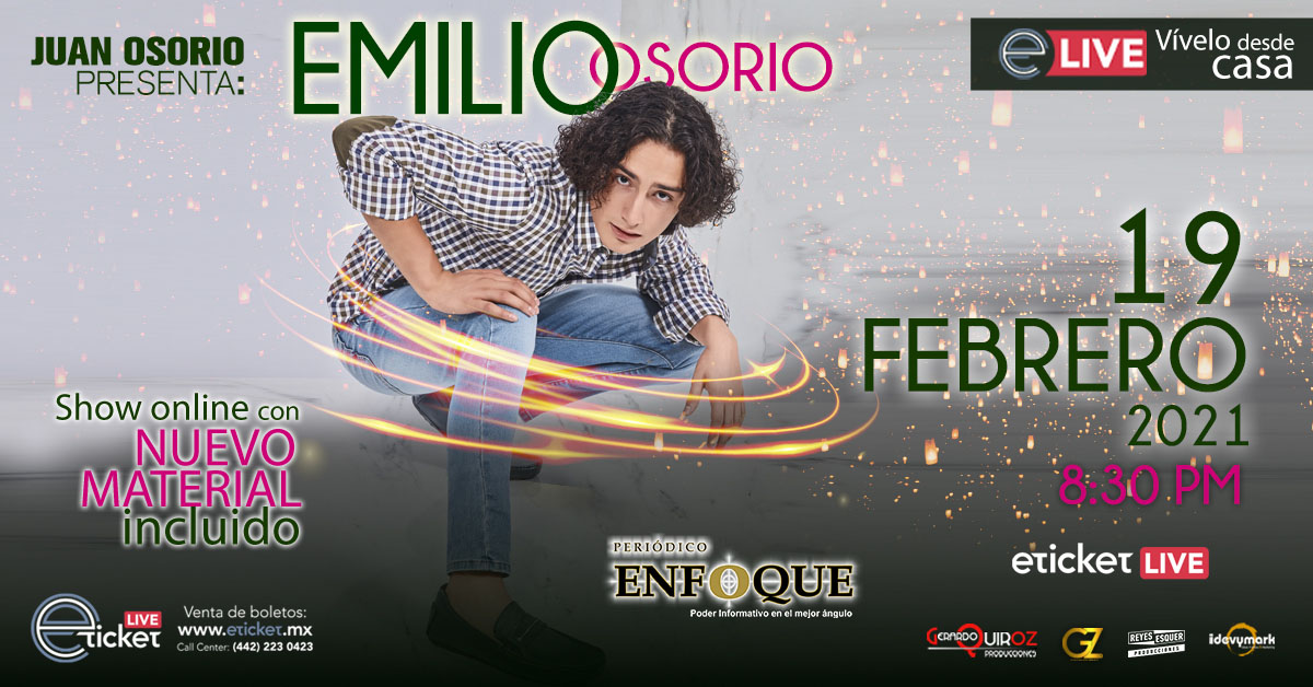 Ciudad de México. Emilio Osorio, se presentará con su show online, nuevo material musical, el viernes 19 de febrero de 2021 a las 08:30 P.M, Evento presentado por Juan Osorio.