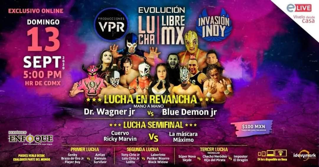 Puebla, Puebla, México. Evolución Lucha Libre Mx, evento Online. Domingo, 13 de septiembre de 2020 a las 05 P.M. (horario ciudad de México)