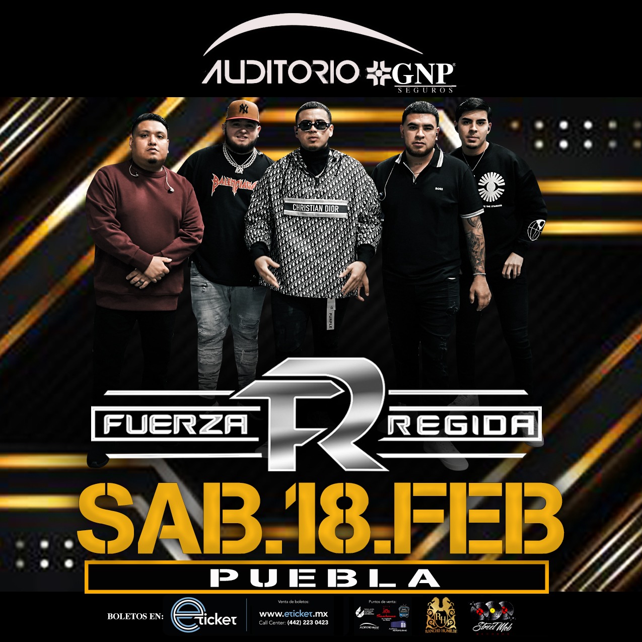 Fuerza Regida, se presentará el sábado 18 de febrero de 2023, a las 09:00 P.M. en el Auditorio GNP Seguros, de la ciudad de Puebla.