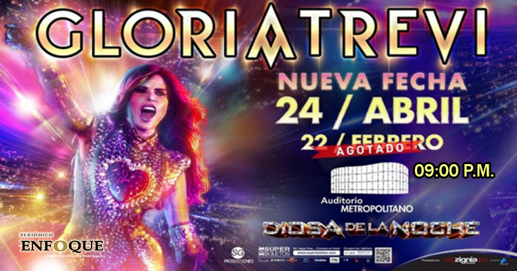 Puebla, Puebla. Gloria Trevi abre nueva fecha el viernes 24 de abril de 2020 con su tour “Diosa de la Noche” en el Auditorio Metropolitano de Puebla, 09:00 P.M.