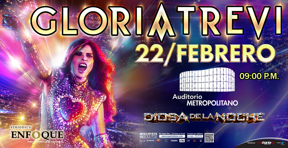 Puebla, Puebla. Gloria Trevi, se presentará con su tour “Diosa de la Noche” el 22 de febrero de 2020 en el Auditorio Metropolitano de la ciudad de Puebla a las 09:00 P.M.