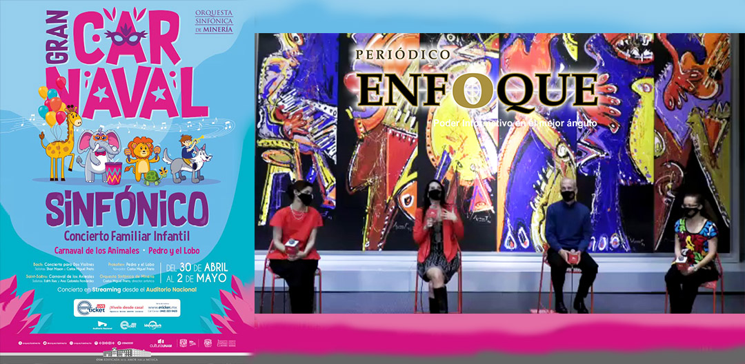 Ciudad de México. Gran carnaval sinfónico "concierto familiar infantil", con La Orquesta Sinfónica de Minería, del 30 de abril al 2 de mayo de 2021 a las 05:00 P.M. (Horario de la ciudad de México). Transmitido en vivo desde el Auditorio Nacional de la ciudad de México. El programa tendrá duración aproximada de una hora y 10 minutos, presenta tres obras maestras: