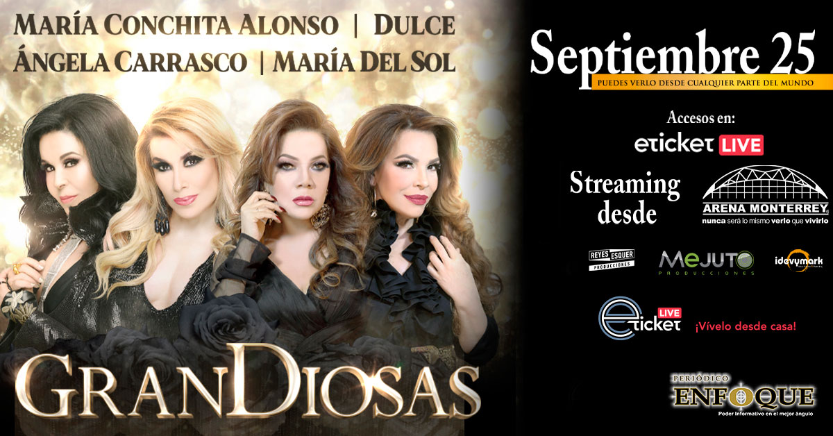 “Grandiosas”; María Conchita Alonso, Dulce, Ángela Carrasco y María Del Sol, streaming desde la Arena Monterrey, sábado, 25 de septiembre de 2021, a las 09:00 P.M., (Horario de la ciudad de México).