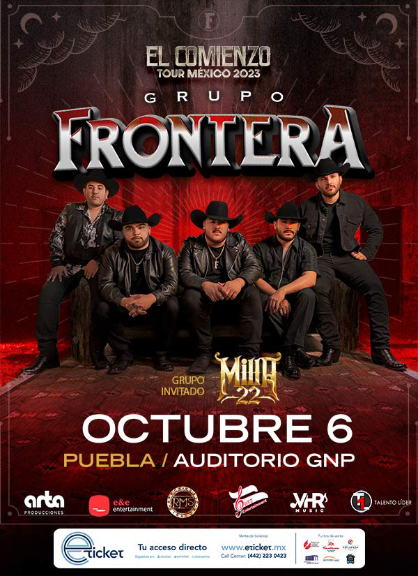 Grupo Frontera, se presentará el viernes 6 de octubre de 2023, a las 09:00 P.M. Auditorio GNP Seguros de la ciudad de Puebla.