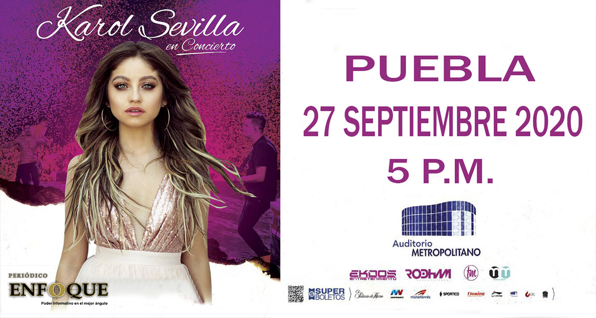 Puebla, Puebla. Karol Sevilla, reprogramó su concierto para el próximo domingo 27 de septiembre de 2020 en el Auditorio Metropolitano de esta ciudad a las 05:00 P.M.