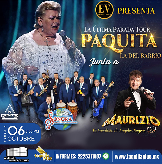 “La última parada Tour” de Paquita la del Barrio, se presentará el viernes 06 de octubre de 2023, en el Auditorio Metropolitano de Puebla a las 08:00 P.M.