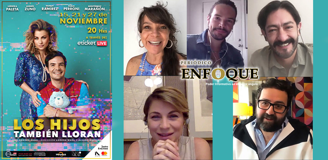 Puebla, Puebla, México. Los hijos también lloran, obra de teatro online con; Ludwika Paleta, Andrés Zuno, Hamlet Ramírez, Pablo Perroni y Monserrat Marañón, 08:00 P.M. (Horario de la ciudad de México), sábados; 15, 21 y 27 de noviembre de 2020.