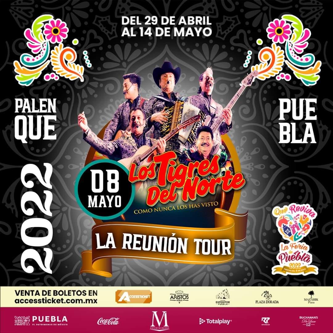 Los Tigres del Norte, “La Reunión Tour”, se presentarán en el Palenque de Puebla el domingo, 08 de mayo de 2022 a las 11:55 P.M. Precios y zonas: