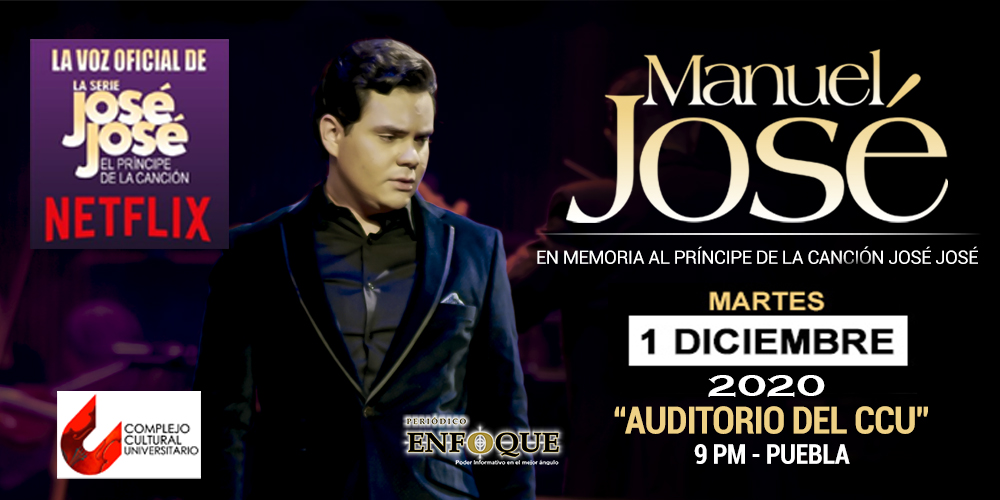 Puebla, Puebla, México. Manuel José, se presentará en Puebla con nueva fecha re agendada para el 01 de diciembre 2020 en el Auditorio del C. C. U. a las 09:00 P.M. La fecha anterior seria el 28 de mayo de 2020.