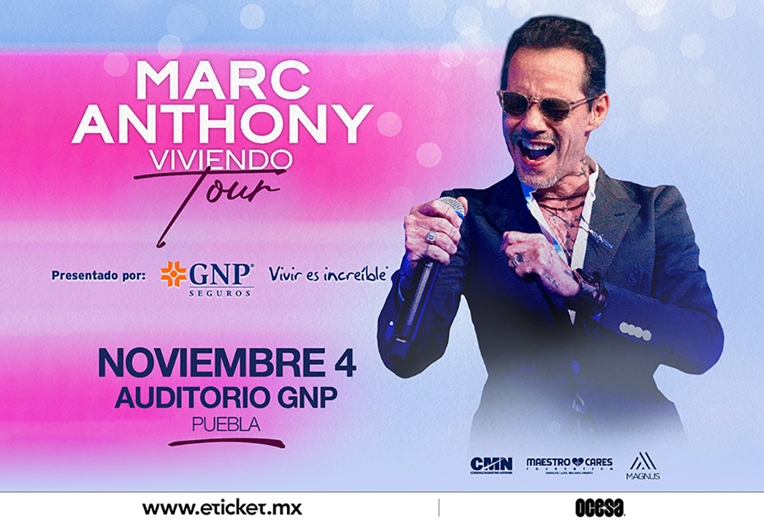 Marc Anthony, se presentará con “Viviendo Tour”, el sábado, 04 de noviembre de 2023, en el Auditorio GNP Seguros, de la ciudad de Puebla, a las 09:00 P.M.