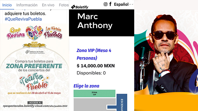 Marc Anthony, Zona VIP (Mesa 4 Personas) $14,000.00 MXN, Feria de Puebla, Teatro del Pueblo, 28 de abril 2022, los boletos están disponibles en la boletera autorizada: https://rpespectaculos.boletify-cloud.com/site/marc-anthony-puebla-22/checkout