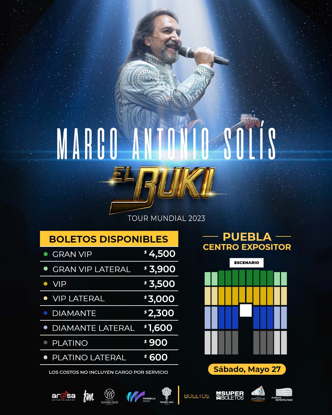 Marco Antonio Solís “El Buki”, se presentará en la ciudad de Puebla, con su #TourMundial2023, ElBukiWorldTour2023, el 27 de mayo, en el Centro Expositor.