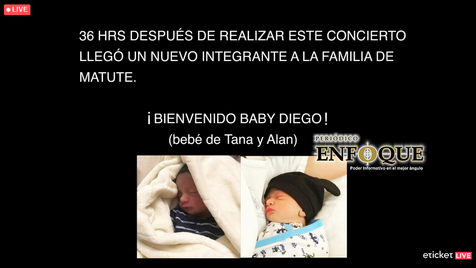 Ciudad de México. Nació Diego, el primogénito del grupo “Matute” en su concierto, mucha felicidad entre los integrantes! Ya lo esperaban desde hace nueve meses!