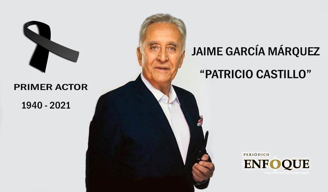 Ciudad de México. Murió Jaime García Márquez, mejor conocido como Patricio Castillo, primer actor, a los 81 años de edad. Falleció el 15 de abril de 2021 por complicaciones por enfisema pulmonar que ya padecía y baja saturación de oxígeno. Esto fue informado por la Asociación Nacional de Actores de México y su esposa Haunani Ruíz, quien desmintió que fuera a causa de COVID.
