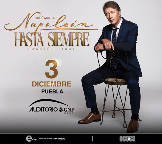 Napoleón, se presentará en la ciudad de Puebla, con su gira de despedida “Hasta siempre”, el sábado 03 de diciembre de 2022, en el Auditorio GNP Seguros, a las 08:00 P.M.