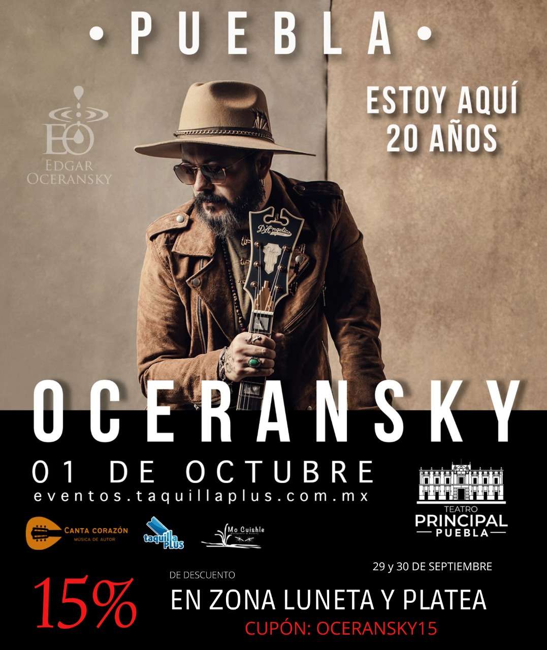 Después haber lanzado su primer álbum de 12 canciones hace 20 años titulado "Estoy aquí", 2do lugar en ventas de ITunes, Edgar Oceransky @eoceransky festeja con una nueva edición y arreglos musicales de este material. Su gira tendrá, hasta ahora 22 estados de la república mexicana.