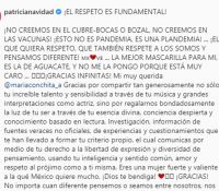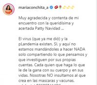 Paty Navidad y María Conchita Alonso hacen campaña en contra de la vacuna, el cubre bocas y ella a sus seguidores les dijo brutos.