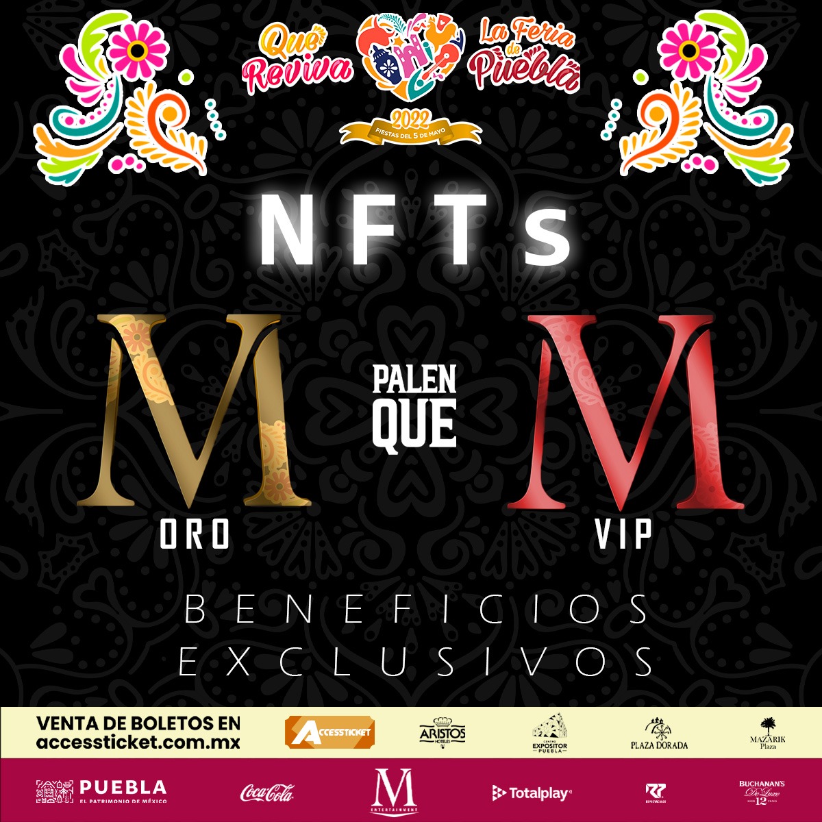 La empresa MV Entertainment, organizadora del Palenque de Puebla 2022, invita al publico a estar pendiente de los NFT’s , en donde próximamente, obtendrán la oportunidad de conocer a sus ídolos, lugares exclusivos y más.