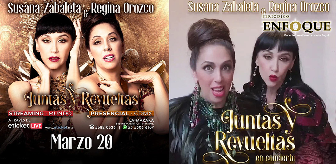 Ciudad de México, Susana Zabaleta y Regina Orozco presentan su streaming “Juntas y revueltas”, el sábado 20 de marzo de 2021 a las 09:00 P.M. (Horario de la ciudad de México).