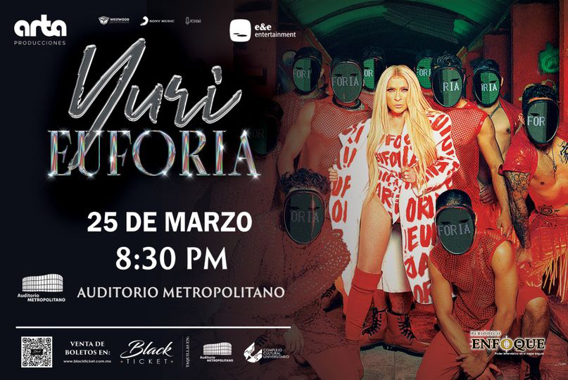 Yuri se presentará con su Tour “Euforia 2023”, el 25 de marzo, a las 08:30 P.M. en el Auditorio Metropolitano de la ciudad de Puebla.