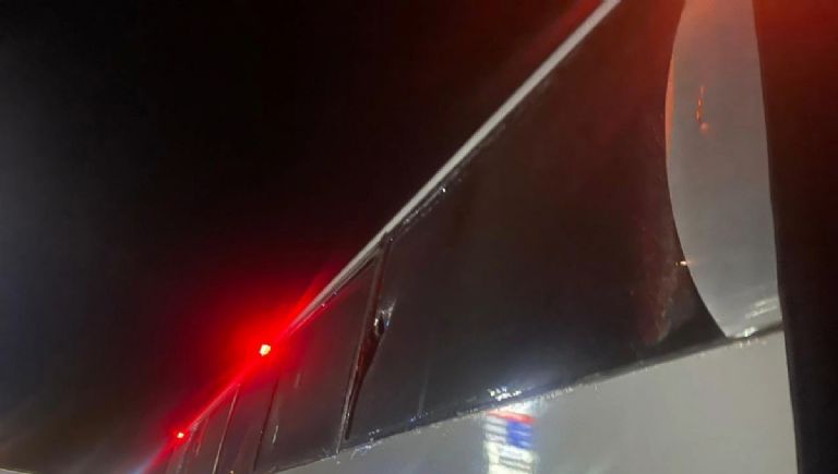 En imágenes compartidas por usuarios de redes sociales, se puede apreciar cómo grupos de presuntos seguidores del Guadalajara arrojan objetos contundentes a un autobús, rompiendo uno de sus cristales.