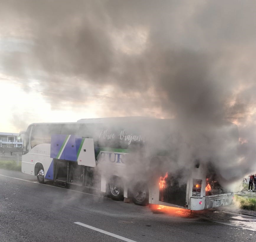 La policía estatal brindó auxilio a los ocupantes quienes por fortuna lograron evacuar la unidad a tiempo. El autobús era conducido por David "N", de 30 años. La policía estatal resguardó la zona a la espera de los bomberos.