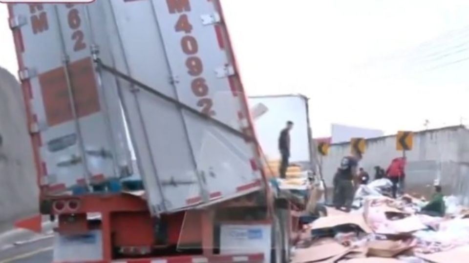 Alrededor de las 1:30 am el tráiler que se dirigía con dirección a Tultitlán no pudo controlar el tractocamión, el cual transportaba aguas y jugos, mismos que se dispersaron por toda la carpeta asfáltica al volcarse en la carretera. Personal de emergencia arribó al lugar para atender el percance.
