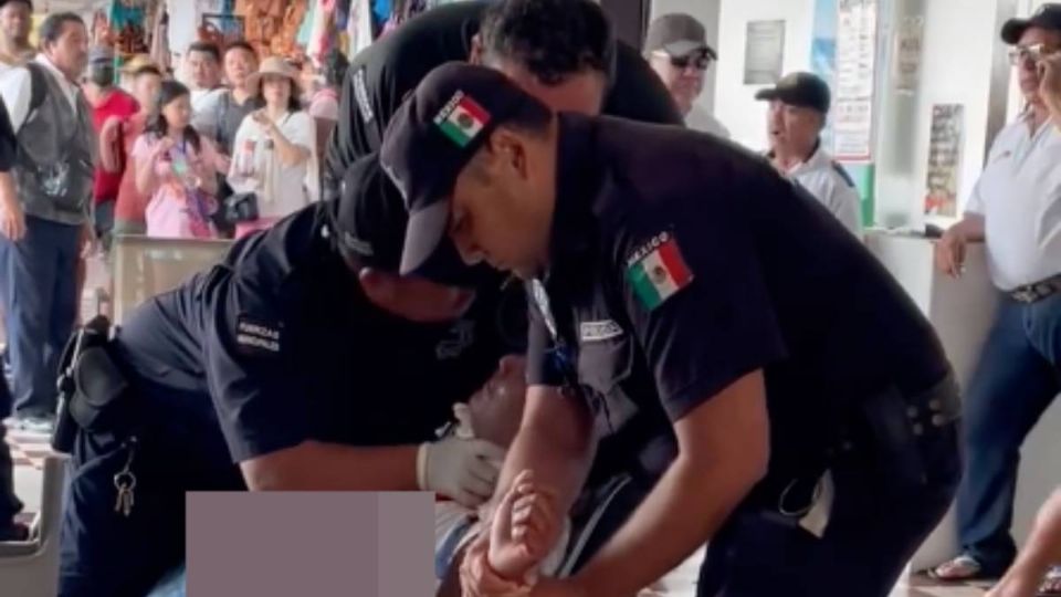 Al ver que los policías llegaron, el hombre no quiso que le brindaran ayuda y siguió amenazando que se quería morir. De pronto cuando llegó a sentarse en uno de los asientos destinados en el área de espera, uno de los uniformados lo sorprendió por detrás y comenzó un fuerte forcejeo hasta que entre tres policías lograron sujetarlo al sentarlo en las sillas.