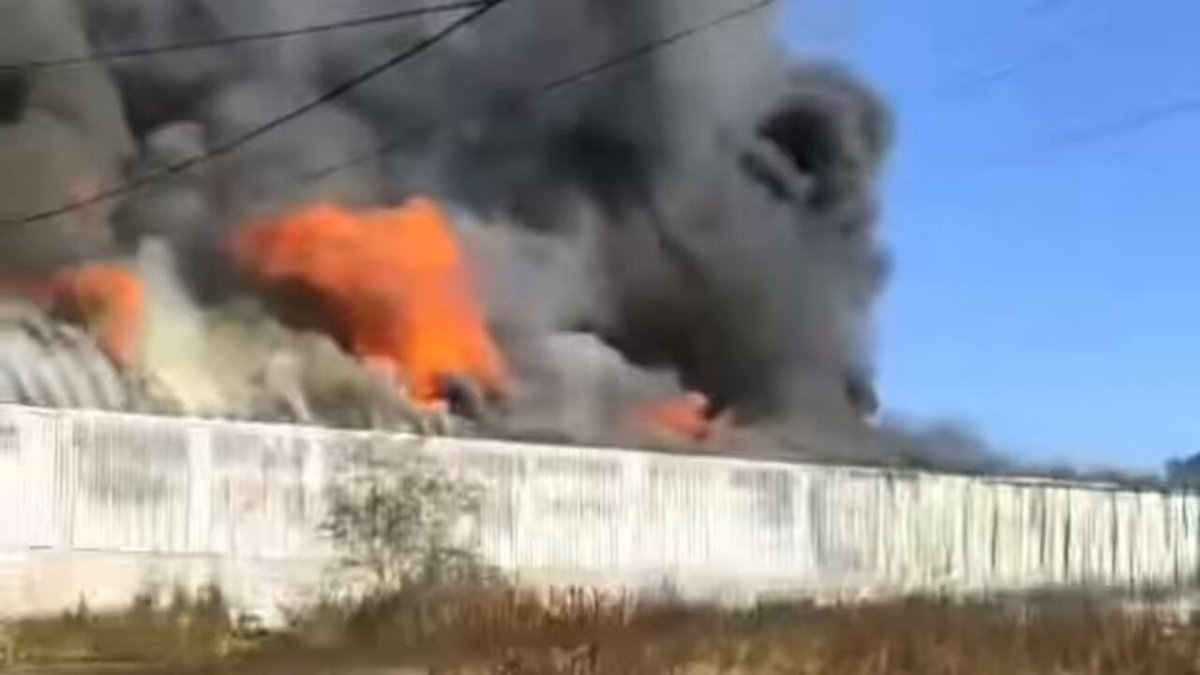 La bodega, donde aparentemente se producían materiales altamente flamables como unicel, fue consumida por el fuego rápidamente y causó una gran columna de humo.