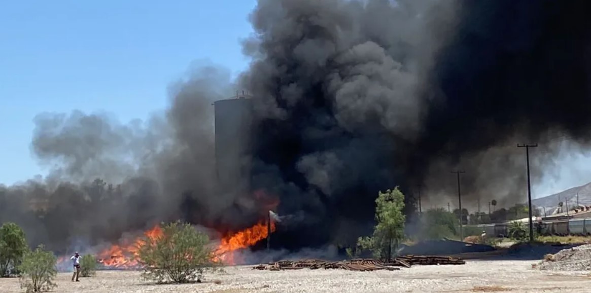 El incendio comenzó en los durmientes de las vías del tren, la dependencia estimó que son cientos de tarimas apiladas, por lo que el fuego se expandió con mayor facilidad.