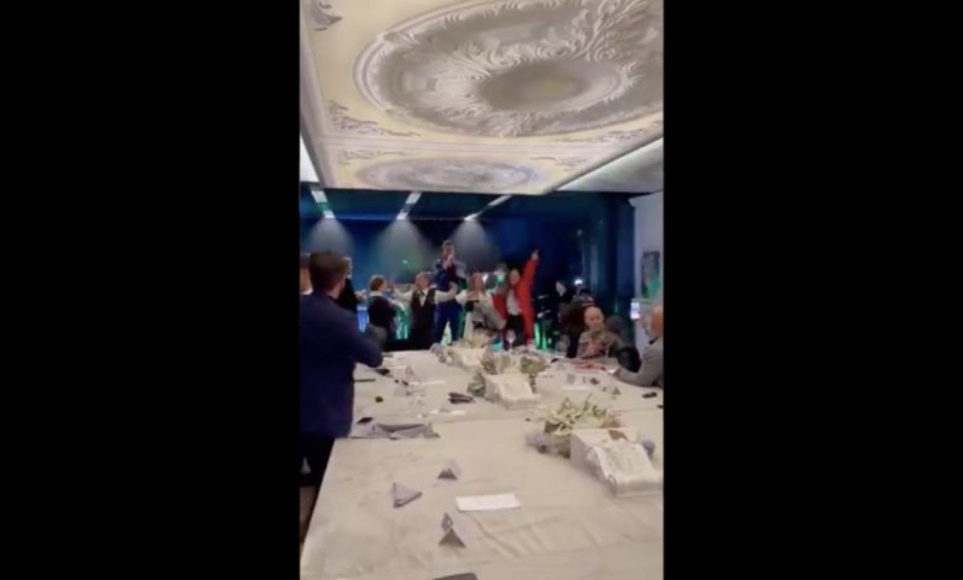 En la grabación se observa al menos a 12 personas, en un espacio cerrado y con techo bajo, cantando “Sweet Caroline” de Neil Diamond, bebiendo y abrazándose; evidentemente, en la fiesta no hubo sana distancia ni usaron cubrebocas, solo los meseros.